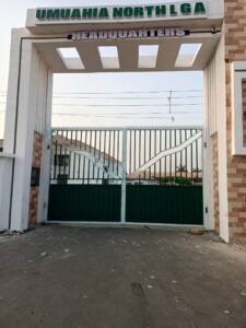This is the new look of the Umuahia North LGA Council Secretariat State of the Art entrance gate constructed and completed by the administration of the immediate past Mayor of the council, Hon. High-Chief Victor Ikeji, Ph.D.